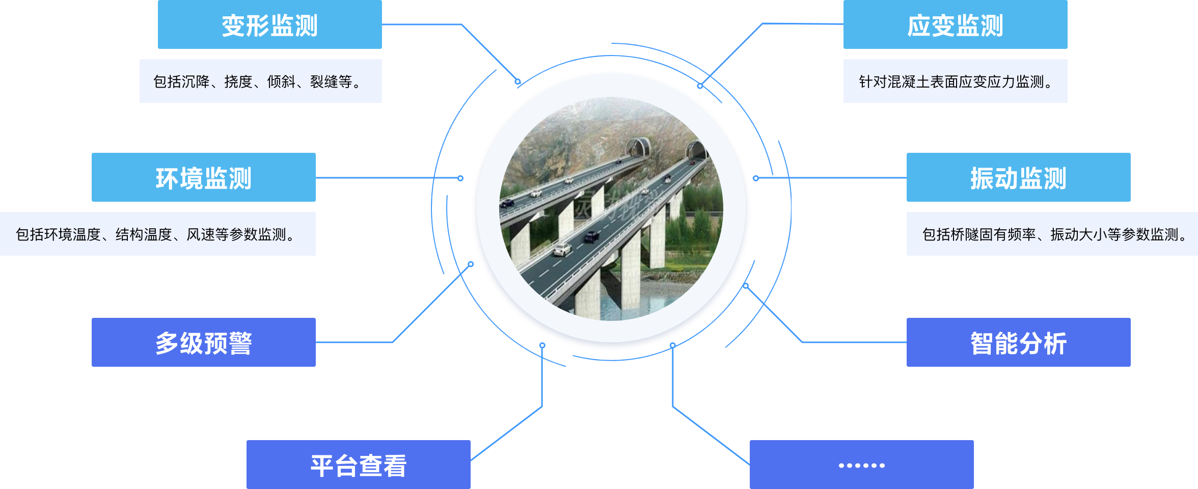 在城市運(yùn)行過(guò)程中,由于受到材料退化、地震、人為因素等影響會(huì)發(fā)生橋梁、隧道主體結(jié)構(gòu)的損壞和劣化。若不及時(shí)檢修和維護(hù),將會(huì)導(dǎo)致很大的破壞甚至坍塌,帶來(lái)巨大的損失和社會(huì)危害。由于橋梁、隧道內(nèi)作業(yè)時(shí)間和空間的局限性,自動(dòng)化監(jiān)測(cè)系統(tǒng)逐漸成為一種主流趨勢(shì)。本系統(tǒng)主要由智能感知端、智能采集端及智慧監(jiān)測(cè)平臺(tái)三部分組成。根據(jù)橋梁、隧道的受力狀態(tài)、風(fēng)險(xiǎn)評(píng)估耐久性分析結(jié)果和監(jiān)測(cè)應(yīng)用需求確定結(jié)構(gòu)的監(jiān)測(cè)內(nèi)容、布設(shè)監(jiān)測(cè)點(diǎn)、選擇監(jiān)測(cè)方法構(gòu)建監(jiān)測(cè)系統(tǒng)、進(jìn)行數(shù)據(jù)管理開(kāi)展監(jiān)測(cè)應(yīng)用。 適用對(duì)象:交通運(yùn)輸主管部門(mén)、市政設(shè)施管理部門(mén)。 解決的問(wèn)題:從根源阻斷橋梁、隧道的風(fēng)險(xiǎn)發(fā)生和傳播;簡(jiǎn)化辦公操作,提升效率;監(jiān)督自動(dòng)化,處置更科學(xué)。 應(yīng)用的價(jià)值:引入“物聯(lián)網(wǎng)+互聯(lián)網(wǎng)+智能監(jiān)測(cè)”技術(shù)和理念,全域覆蓋,精準(zhǔn)監(jiān)測(cè),網(wǎng)格化管理;從預(yù)案庫(kù)直接提取相應(yīng)處理辦法,將安全隱患消除在萌芽狀態(tài)。
